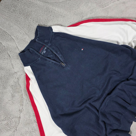Tommy Hilfiger Quarter Zip Sweatshirt Navy White Red XXL Cotton Pullover Jumper
