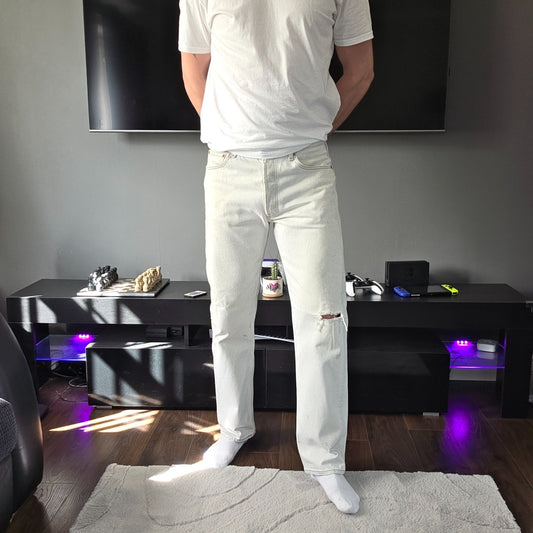 Levi’s 501 Jeans White Made in USA Vintage W34 L32 Distressed Stained Denim