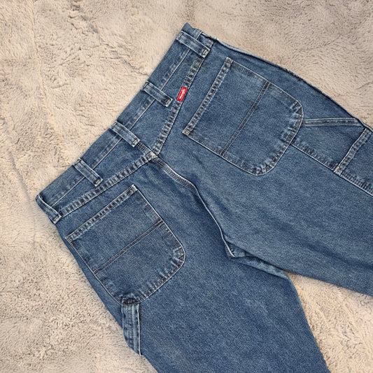Wrangler carpenter straight leg blue denim jeans W34 L30 made in Mexico workwear