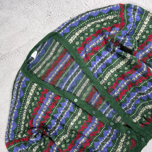 Vintage Multicolour Patterned Knit Cardigan Women’s S Green Blue Red