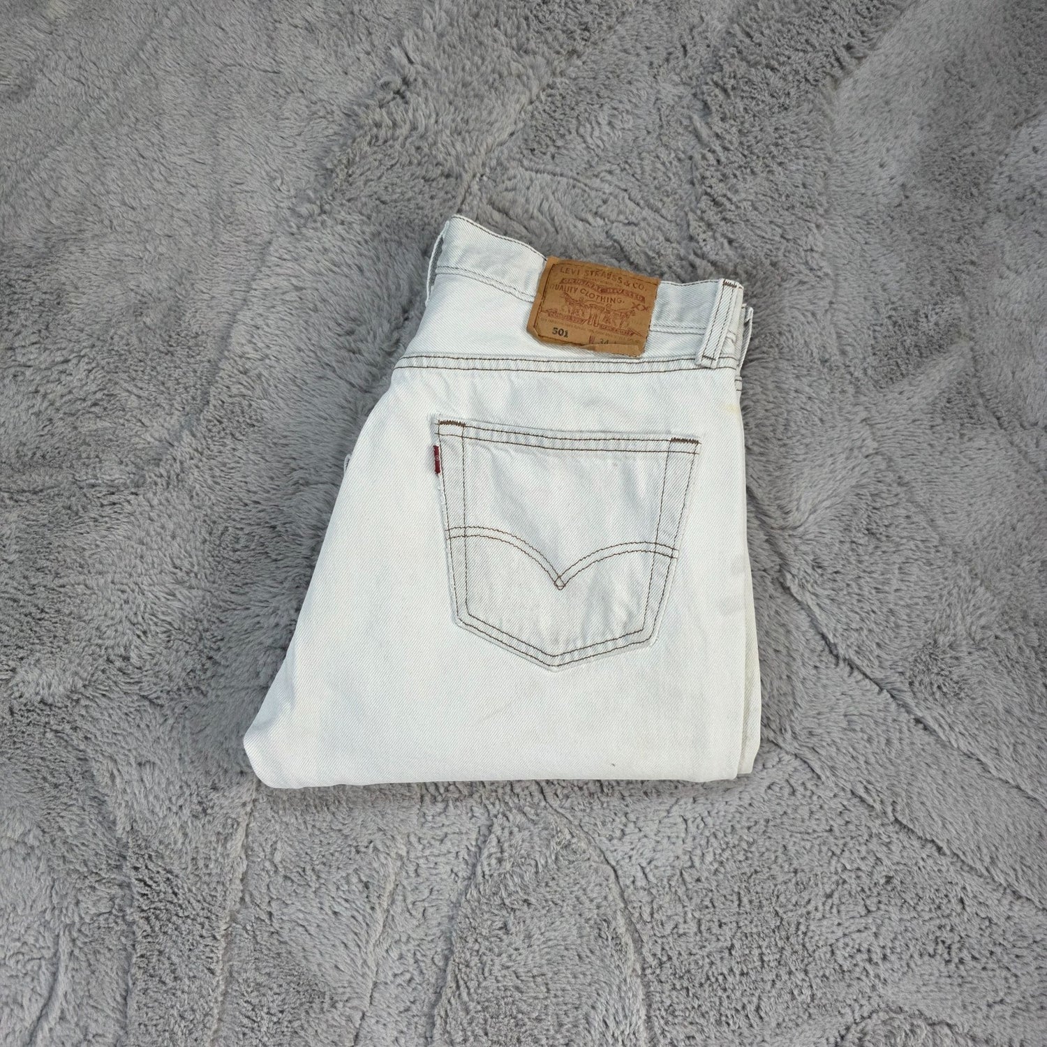 Levi’s 501 Jeans White Made in USA Vintage W34 L32 Distressed Stained Denim