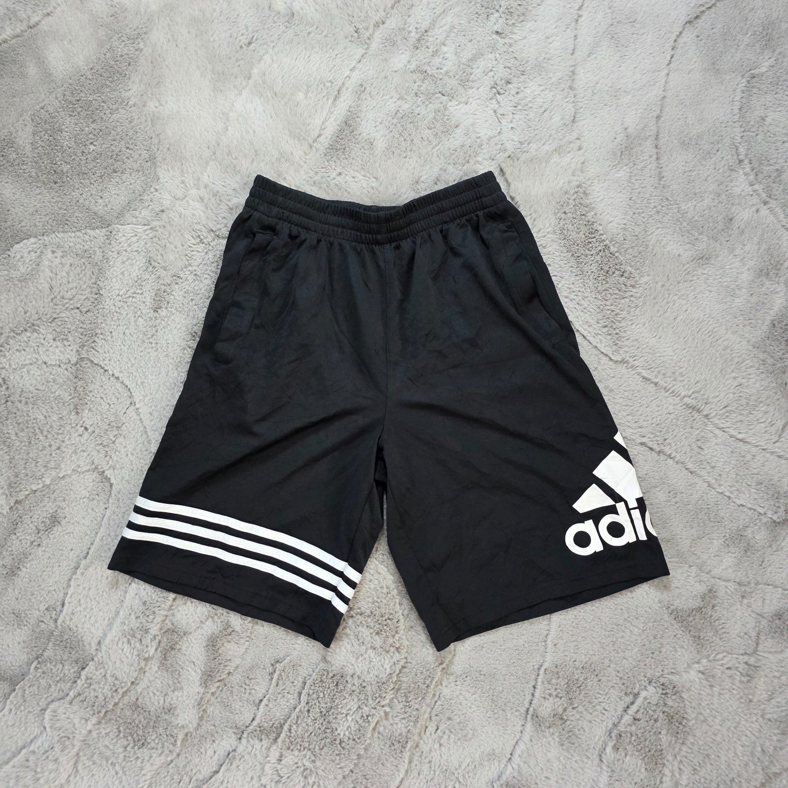 Classic Adidas shorts featuring the oversized logo on one leg and triple stripe detail on the other β breathable mesh fabric and a comfortable elasticated waist with drawstring.