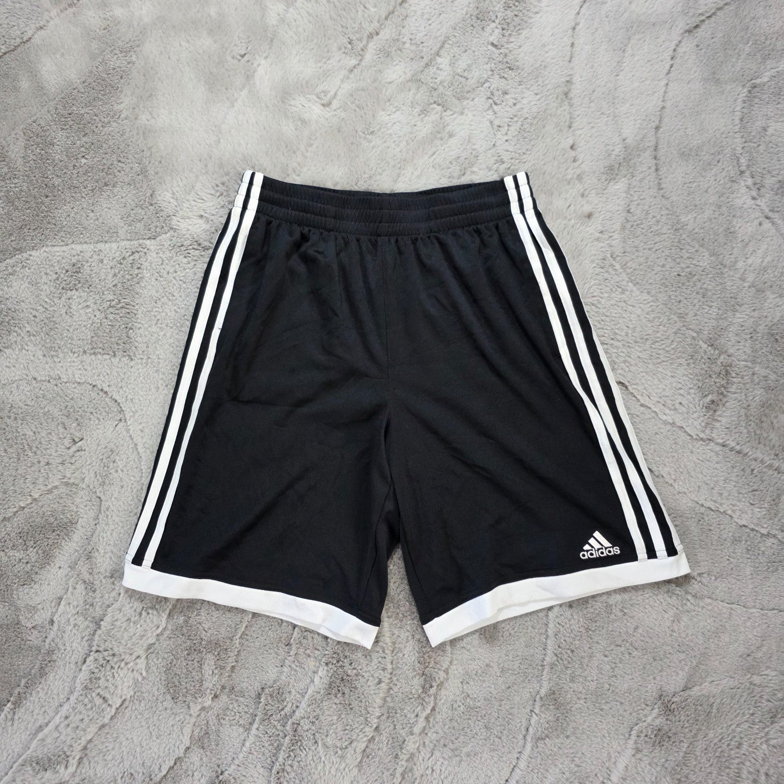 ⚽ Lightweight and breathable Adidas training shorts featuring the classic 3-stripe design and mesh trim. Labelled L but fit much smaller — best suited for waist sizes approx. 26–30” thanks to the elastic waistband. Note: missing drawstring.