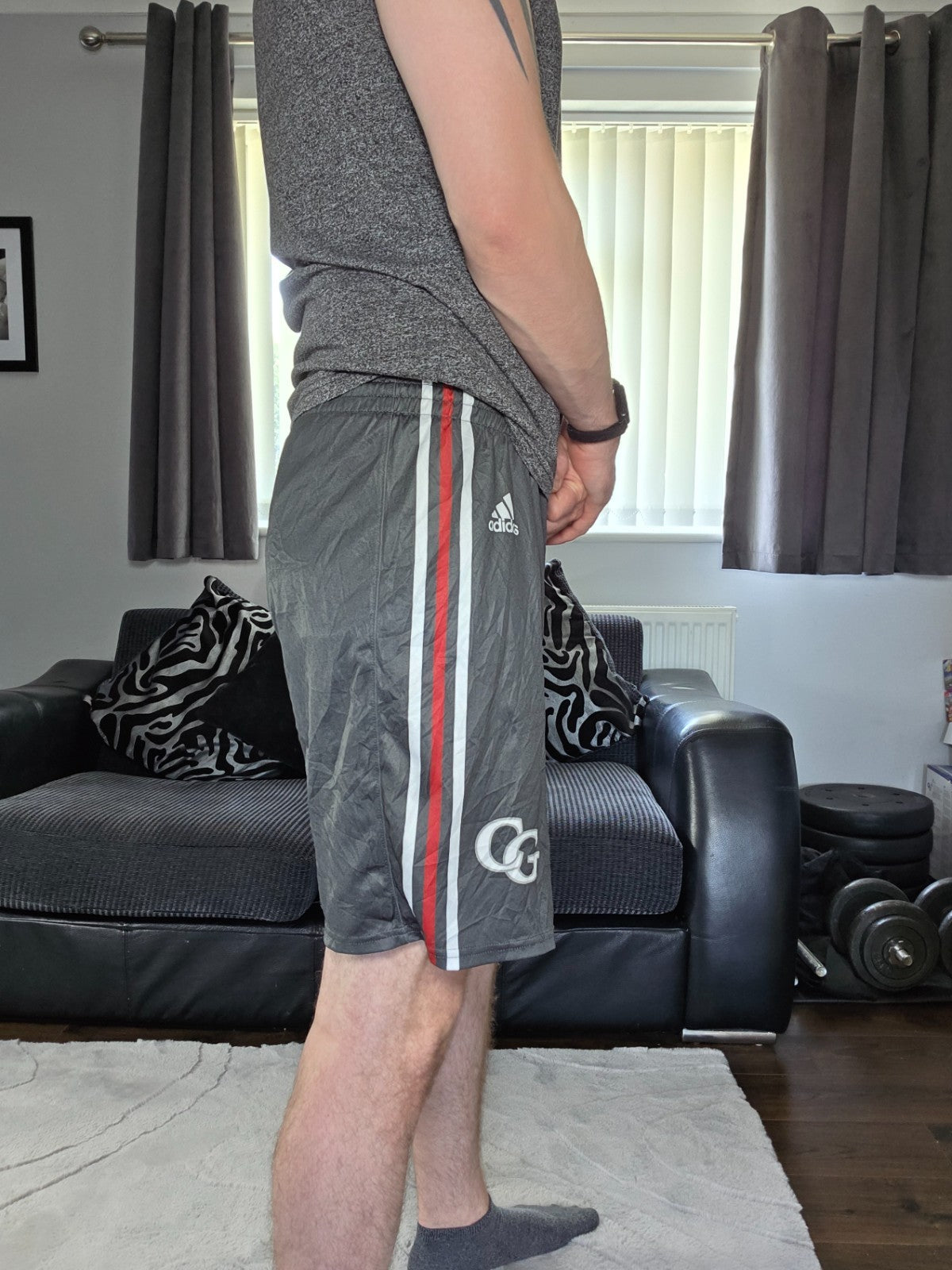 Adidas Player Issue Style Shorts W28 Grey Red White Trim Drawstring Size L 16 CG