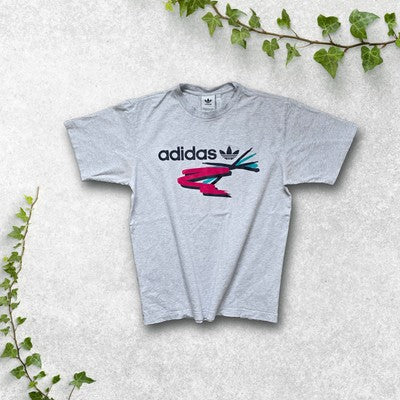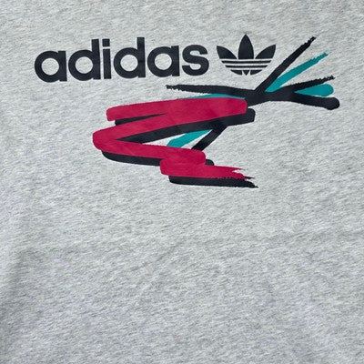 Adidas Trefoil T-Shirt Light Grey Large Graphic Logo Tee Retro Style Cotton
