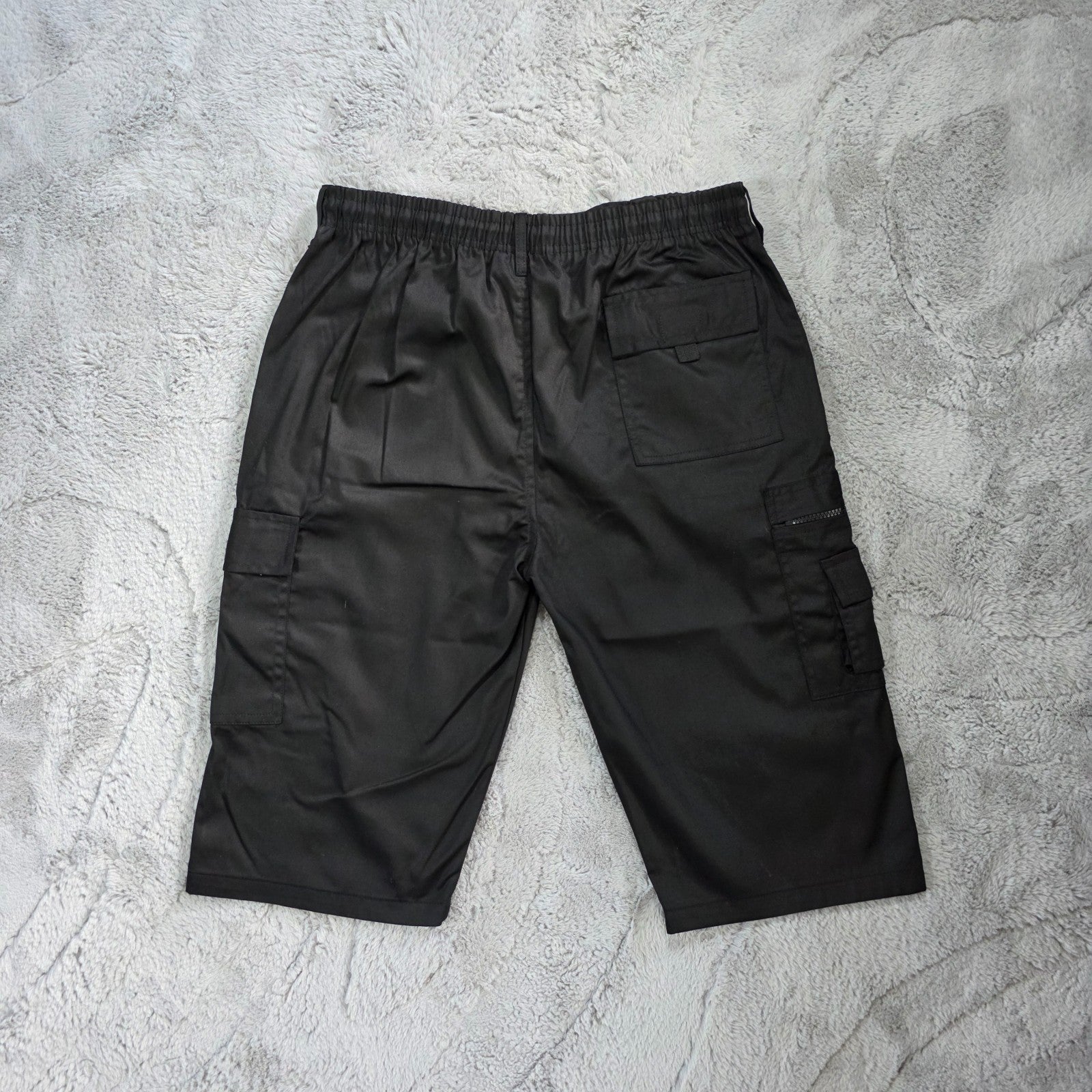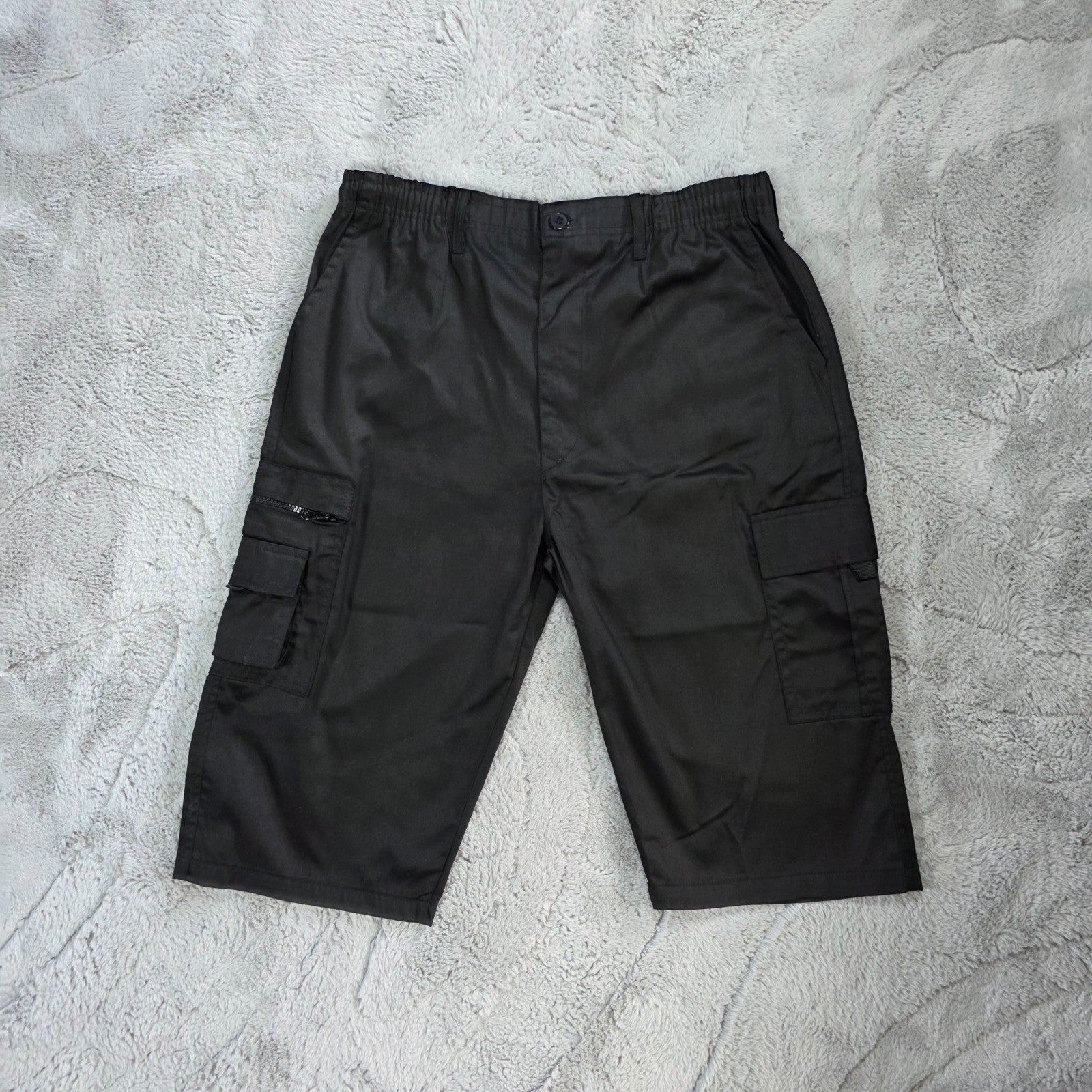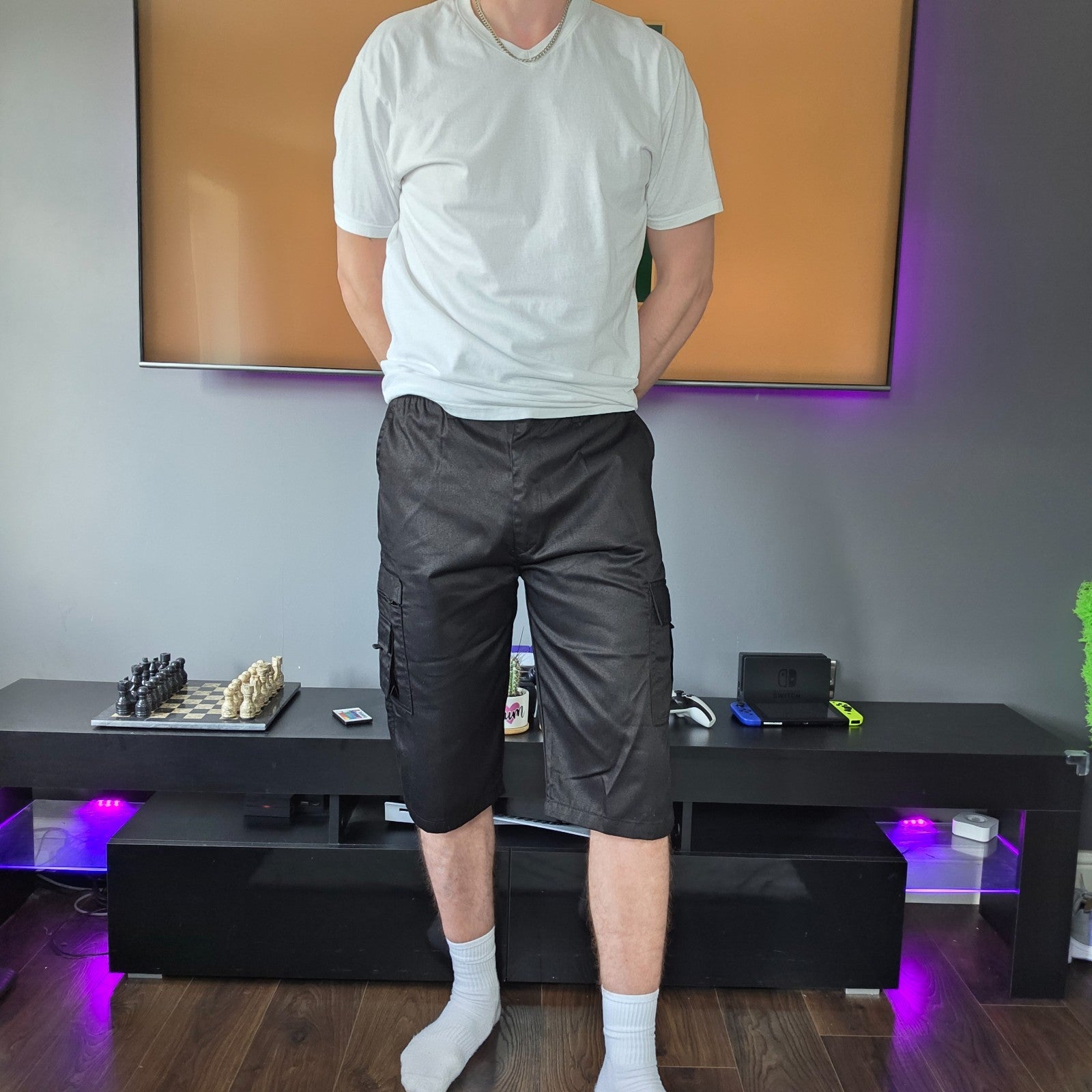 Amir Men’s Black Cargo Shorts Elasticated Waist W32 Long Inseam 14” L26