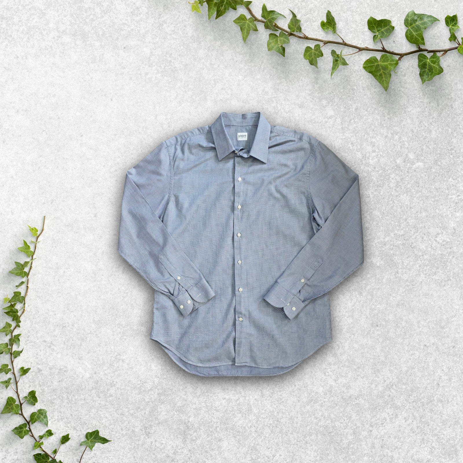 Armani Collezioni men’s long sleeve shirt in a fine blue and white check pattern. 100% cotton fabric. Labelled size 43/17 (XL). Excellent condition.