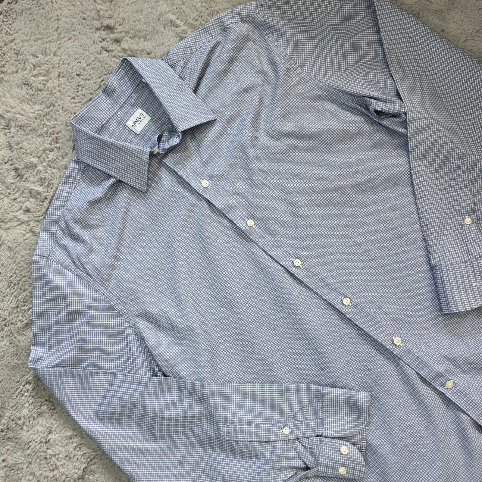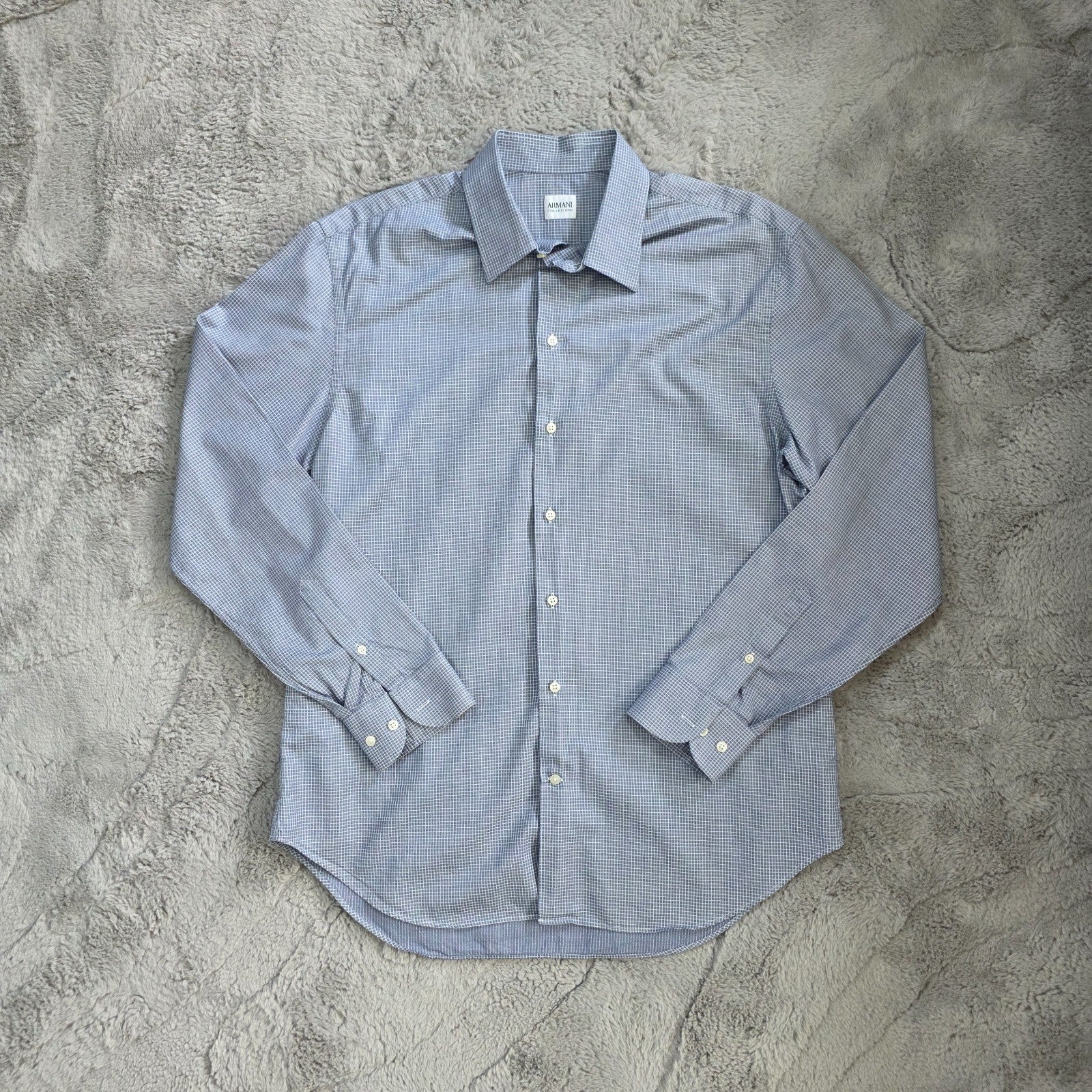 Armani Collezioni Men’s Shirt Size 43/17 (XL) Blue White Check 100% Cotton