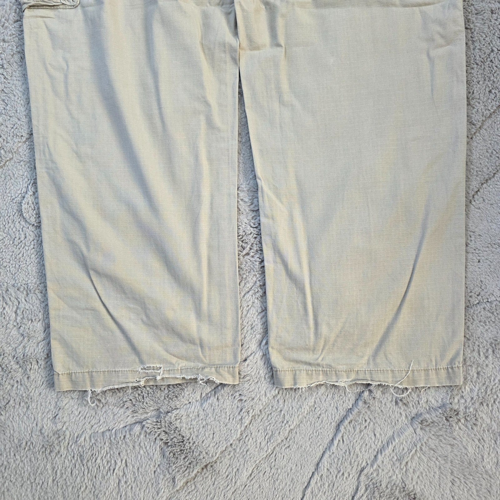 🧰 Details: Dual cargo pockets, flap back pockets, belt loops, zip fly