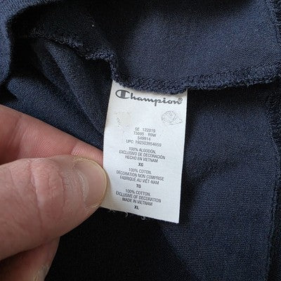 π― Made from soft 100% cotton and tagged XL, with a nice drape and easy-to-style navy base. Champion branding appears on the sleeve and inside neck for that authentic touch π§΅
