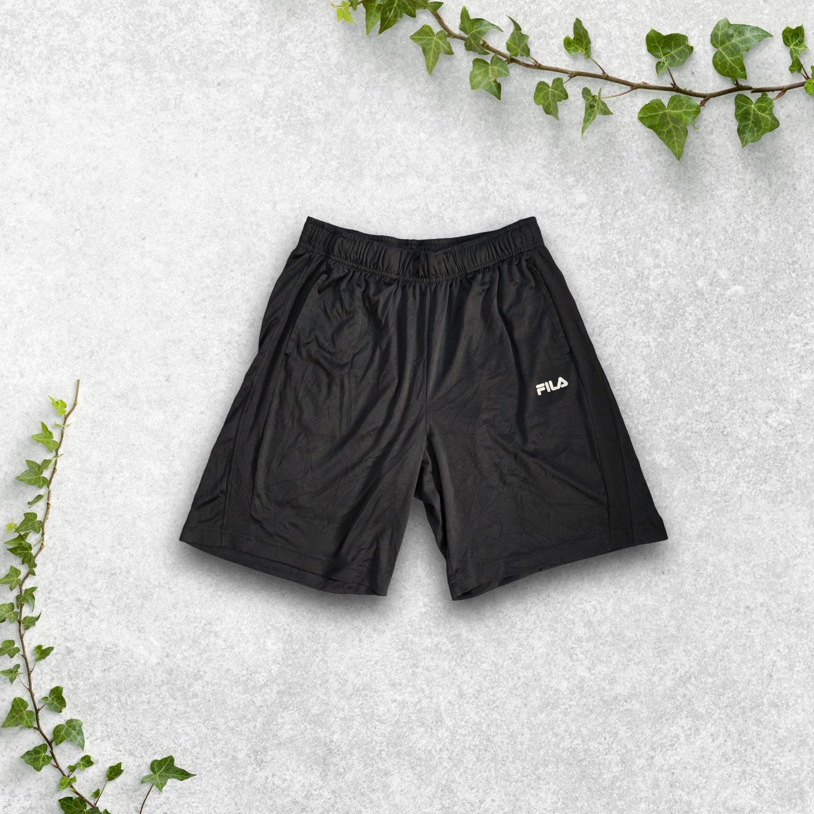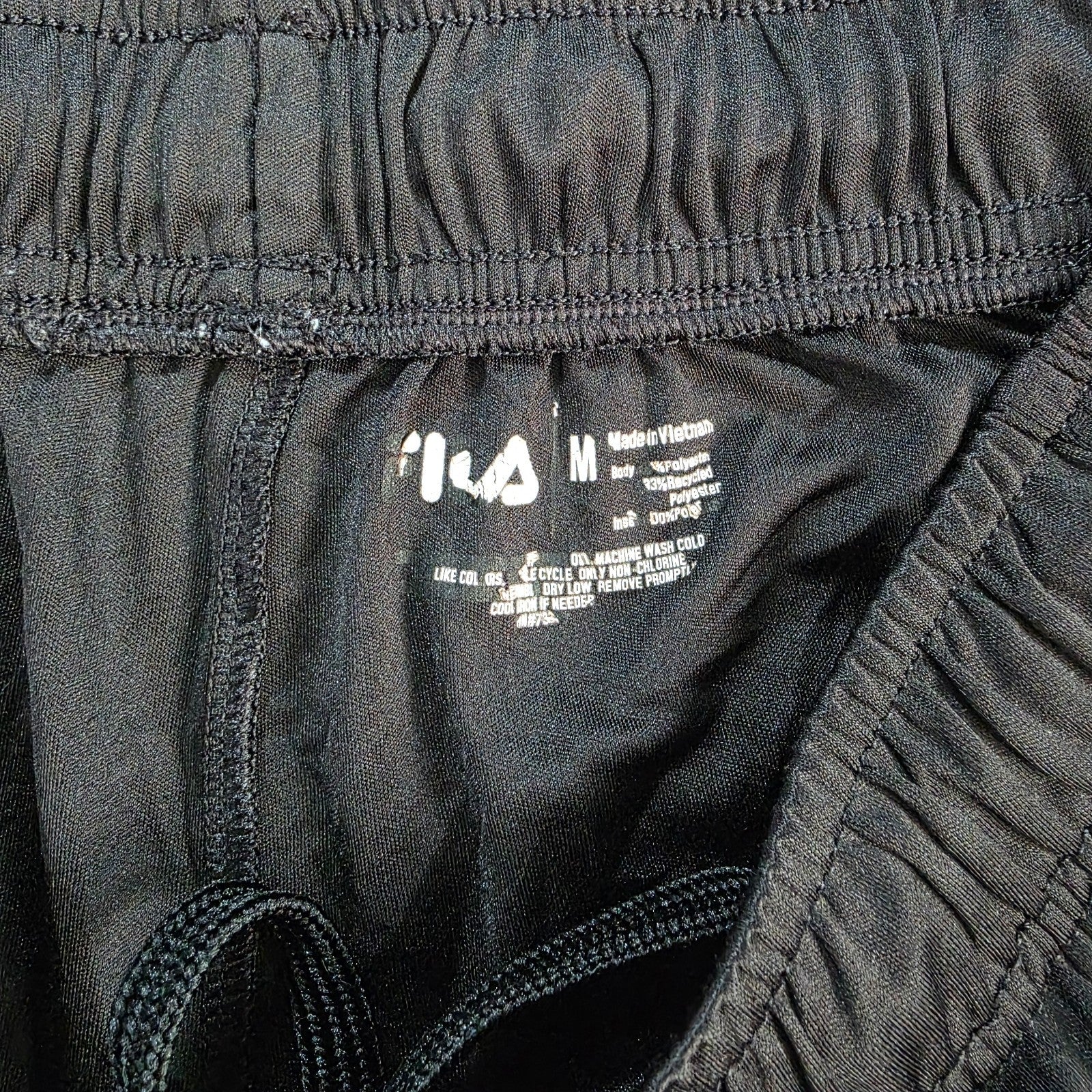 Fila Black Sports Shorts Size M W28 Made in Vietnam Mesh Panel Gymwear
