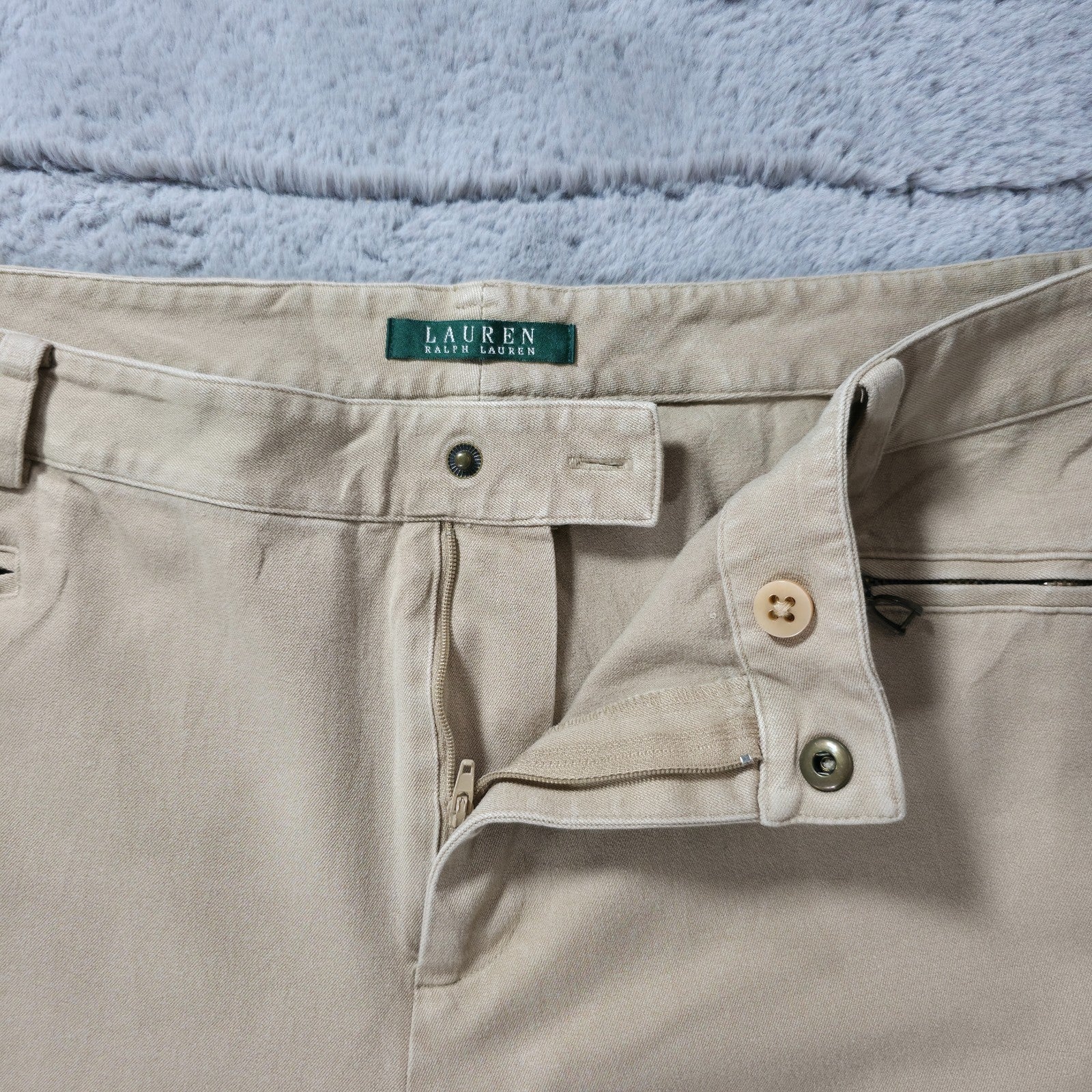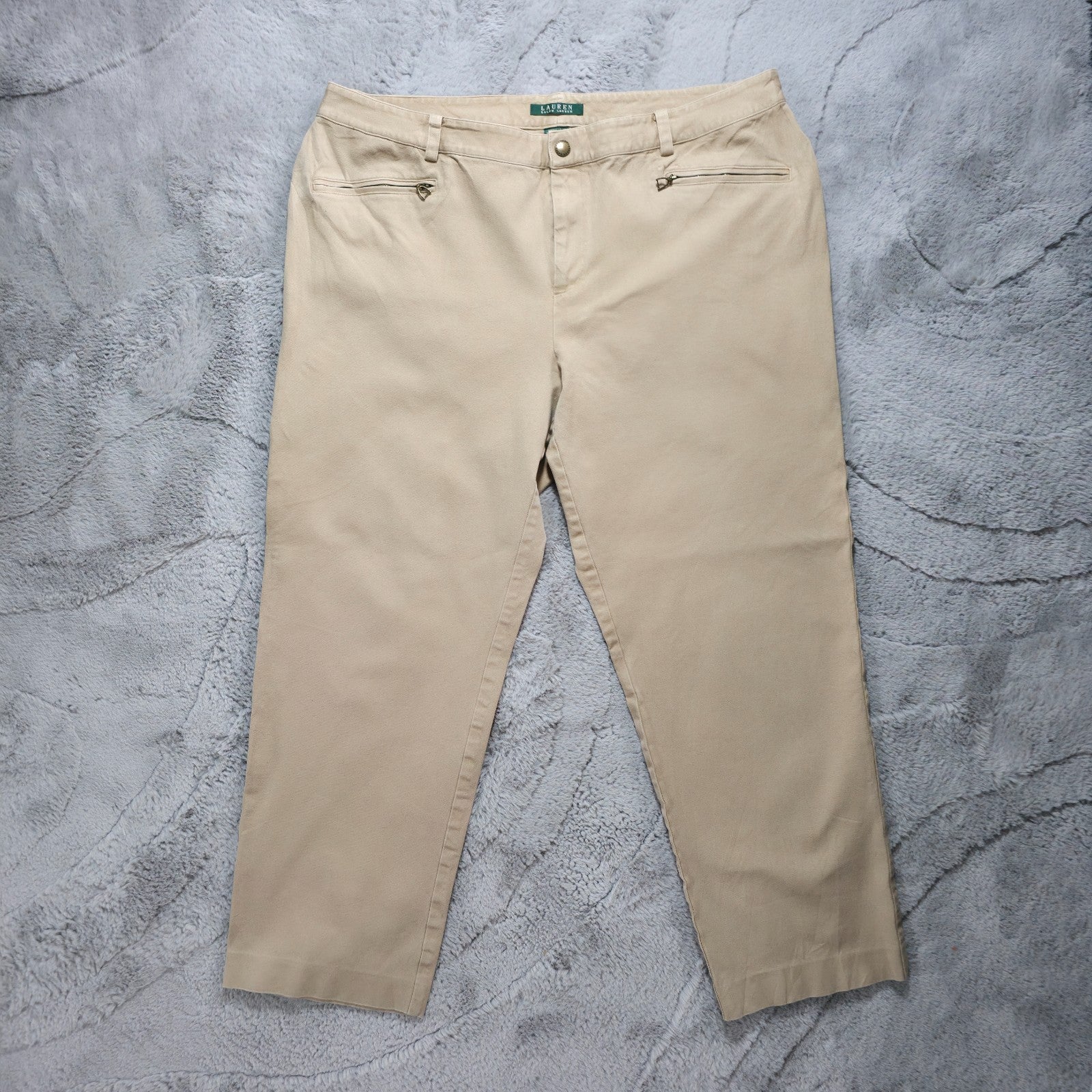 Lauren Ralph Lauren Beige Stretch Zip Pocket Trousers US 18W UK 22 W40 L28