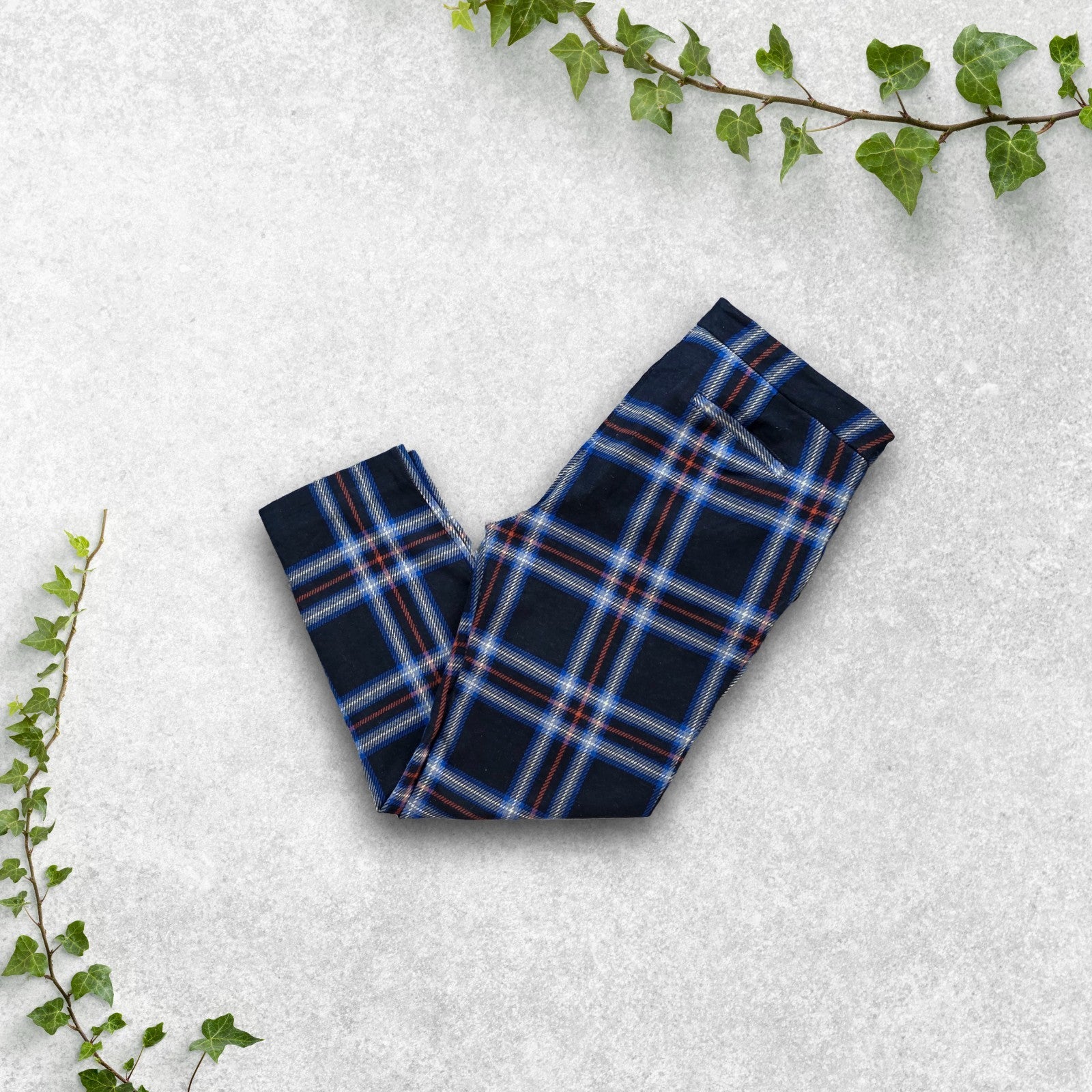 🎯 Make a bold statement with these Lauren Ralph Lauren trousers in a striking blue, red and white check. Made from a soft stretch blend, they feature a slim cut, zip fly, and gold RLL logo tab — ideal for smart-casual styling. Labelled M but fits more like a UK 14–16 based on measurements.