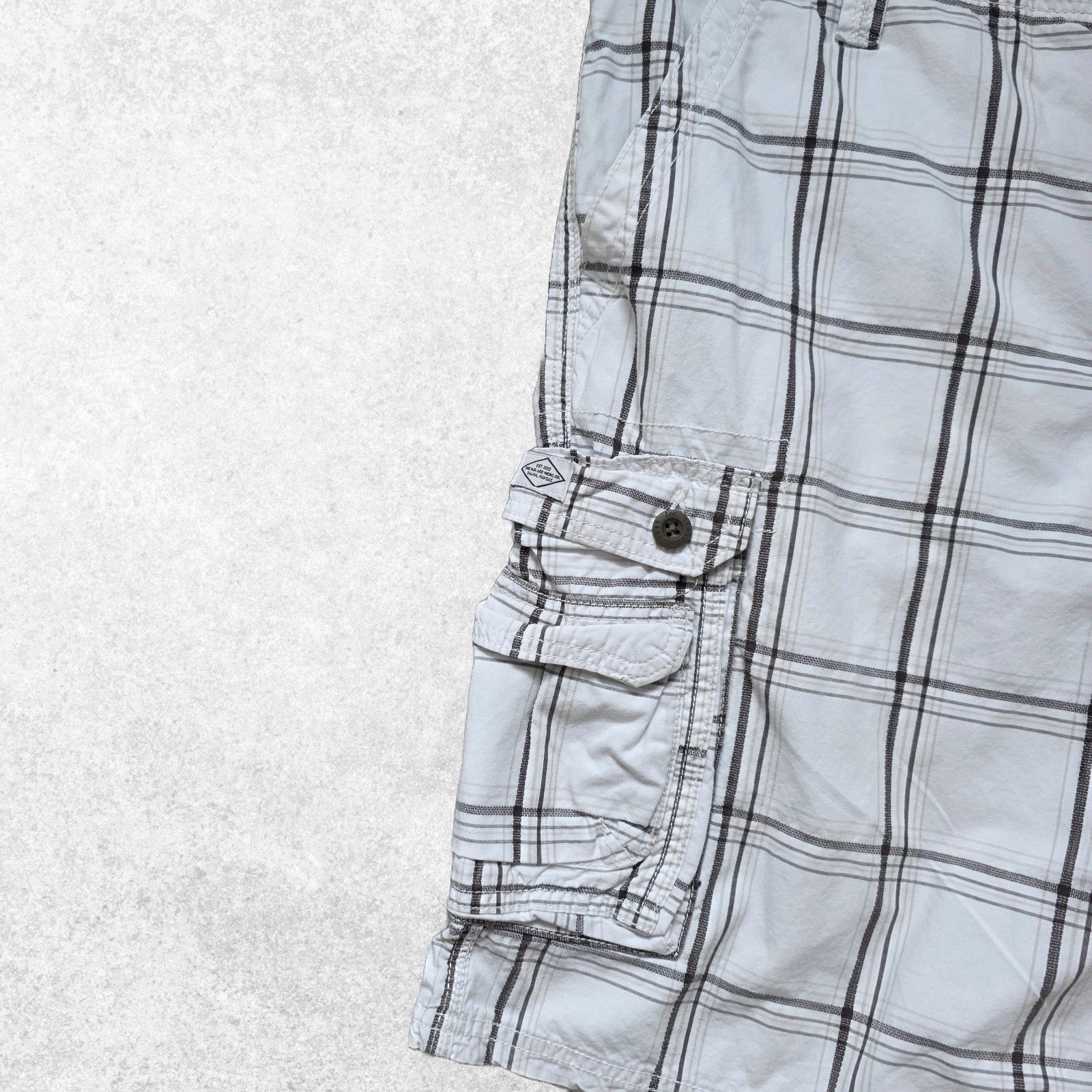 Lee Checked Cargo Shorts W40 White Grey Cotton Summer Utility Pockets