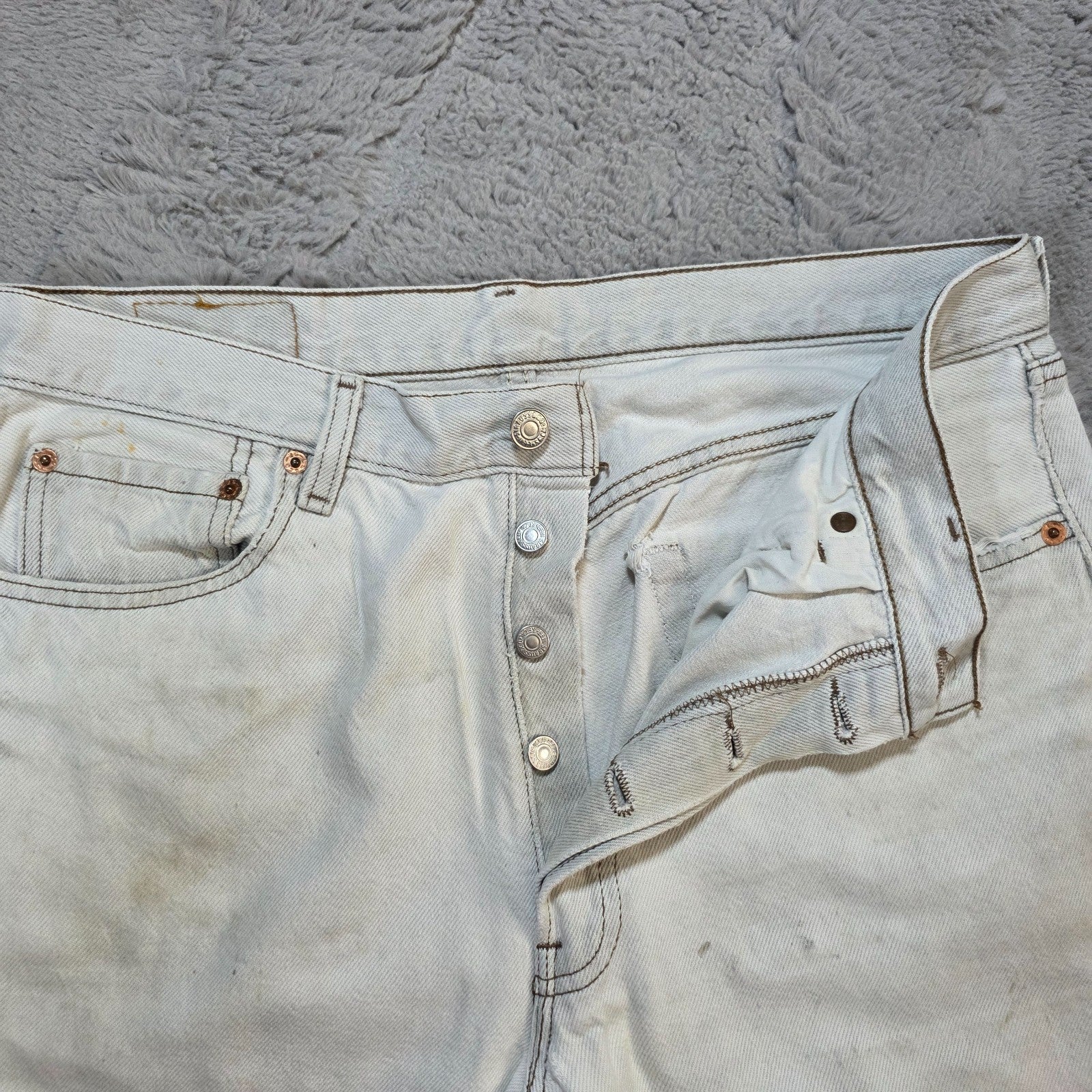 Levi’s 501 USA Made White Straight Jeans W34 L32 Distressed / Paint Marks