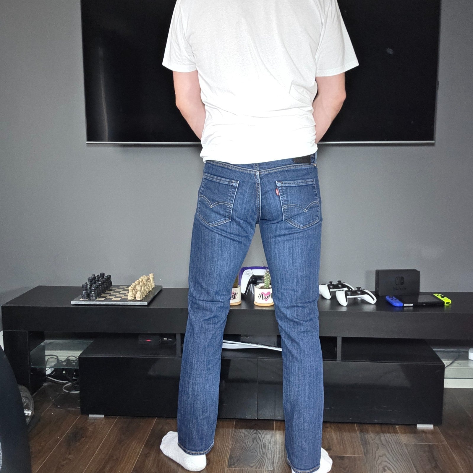 Timeless Levi’s style in a versatile slim fit 👖 These Levi’s 511 jeans come in a classic blue wash with a distinctive black back patch for a modern twist. Modelled for fit reference.