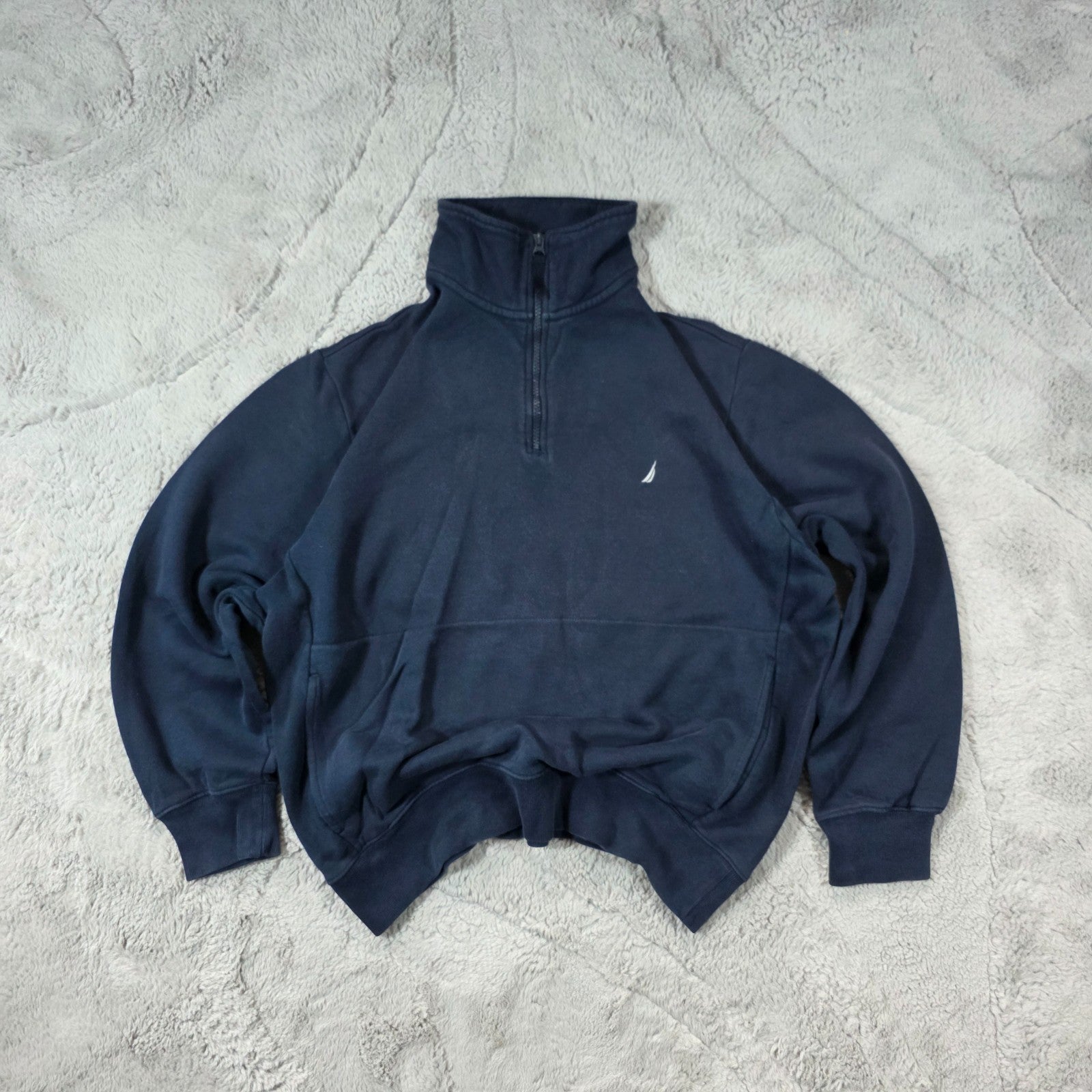 Nautica Blue Quarter Zip Sweatshirt Men’s M Pullover Jumper Logo Embroidered