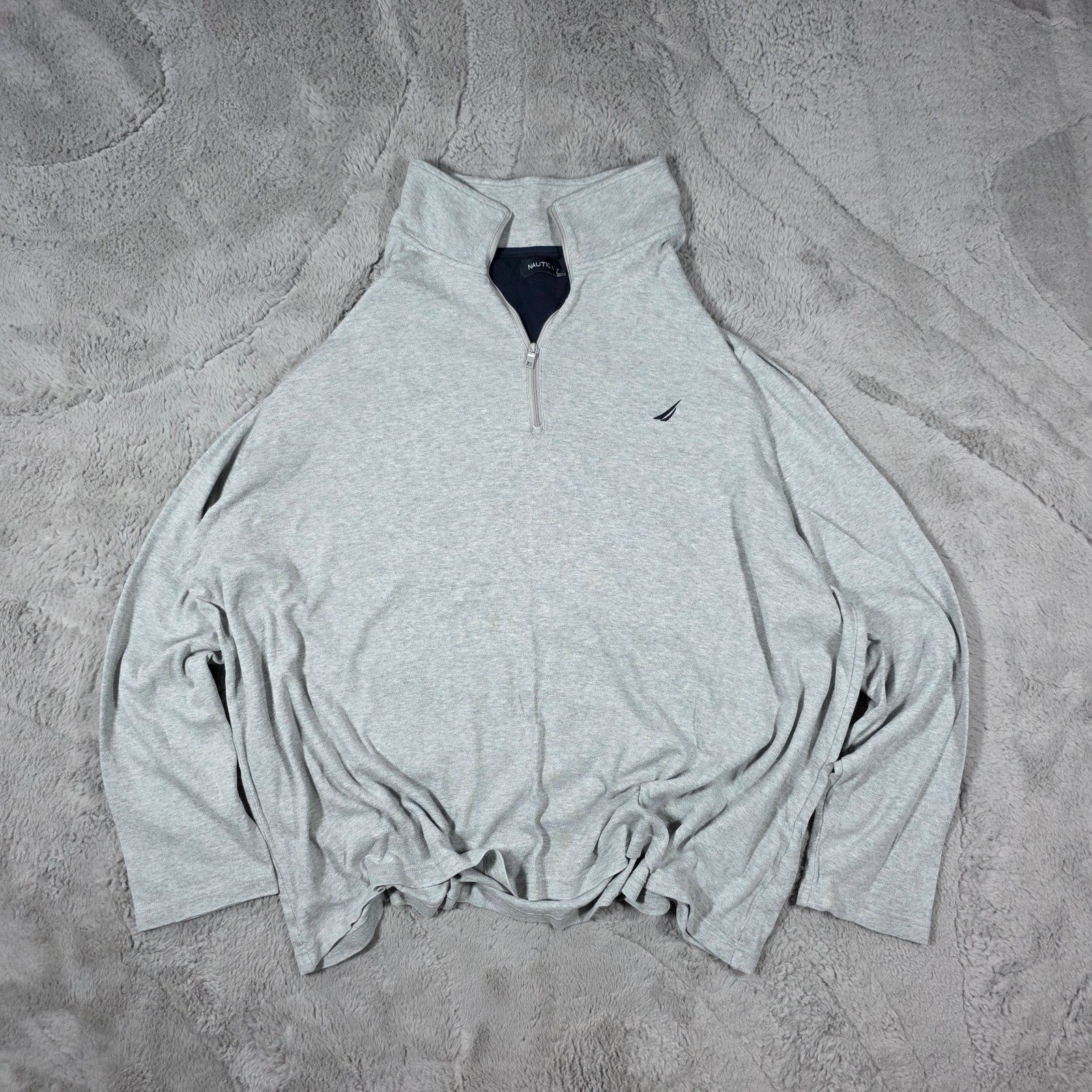 Nautica Men’s Grey Quarter Zip Sweatshirt Size 3XL Regular Fit Cotton Pullover