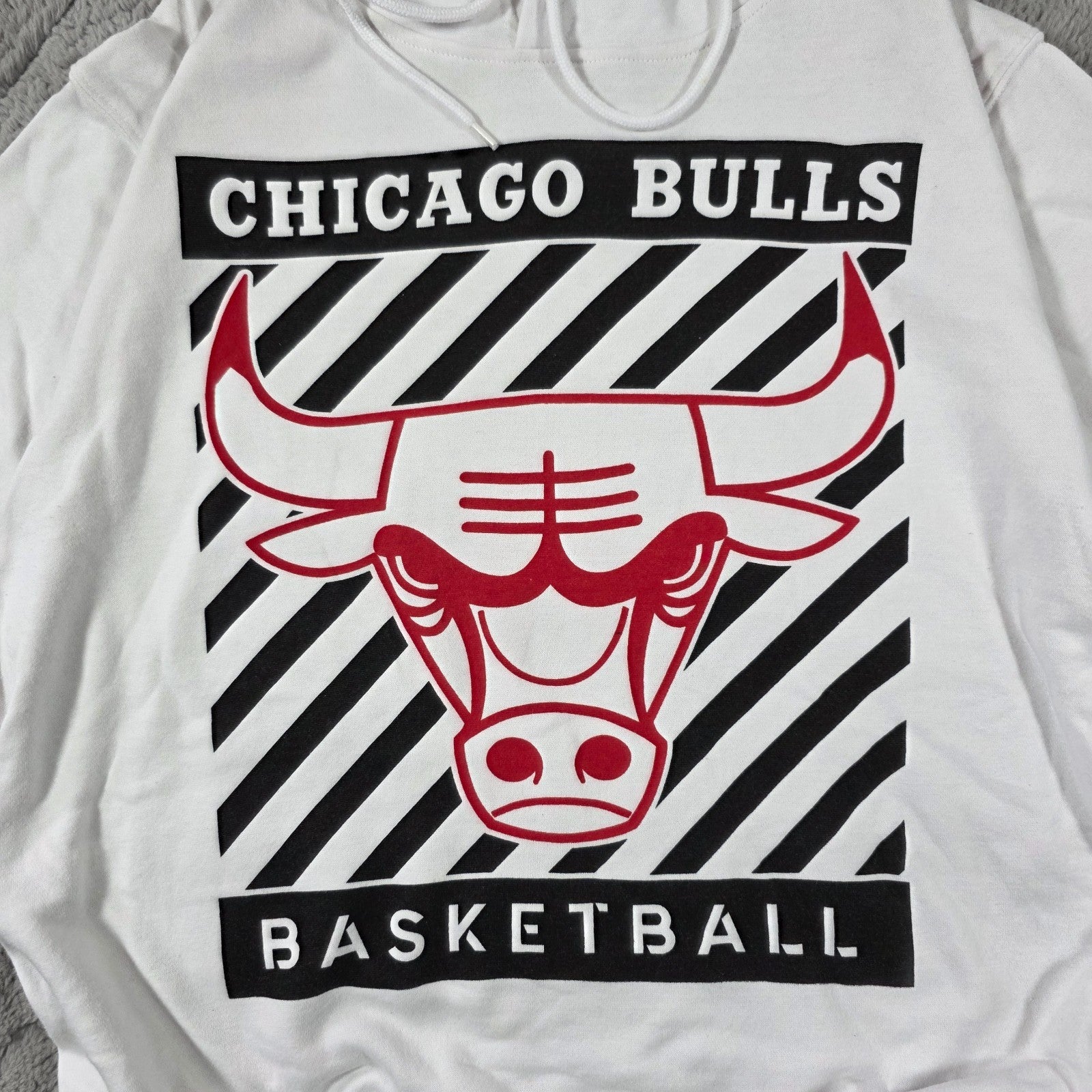 NBA Chicago Bulls Menโs White Hoodie 2XL ๐ Graphic Pullover Sweatshirt
