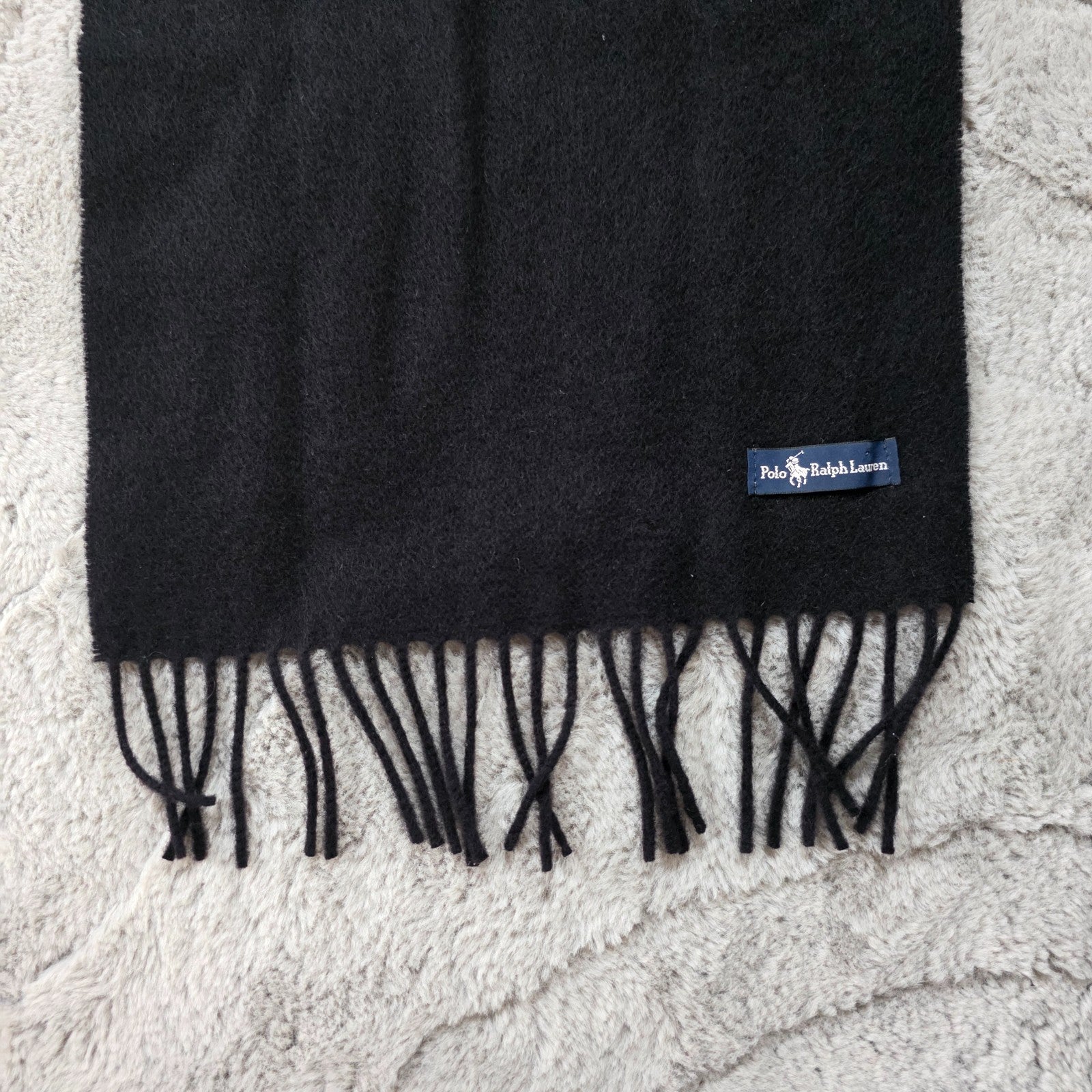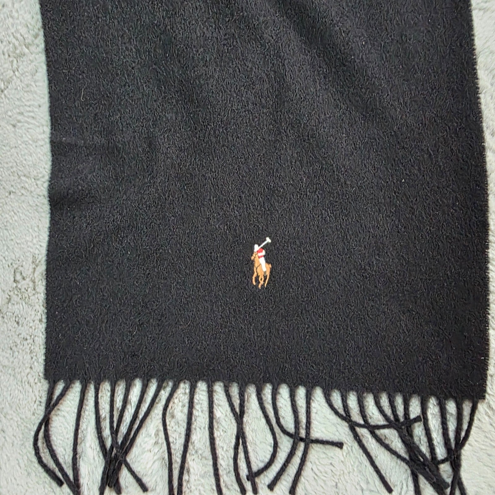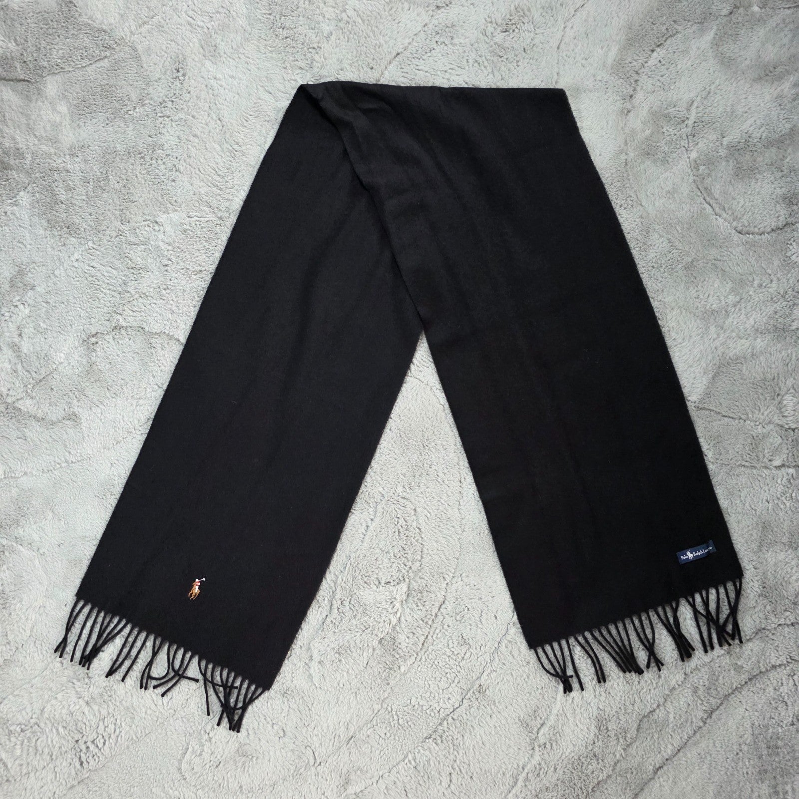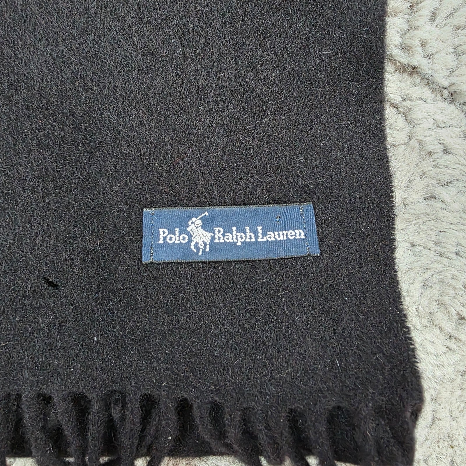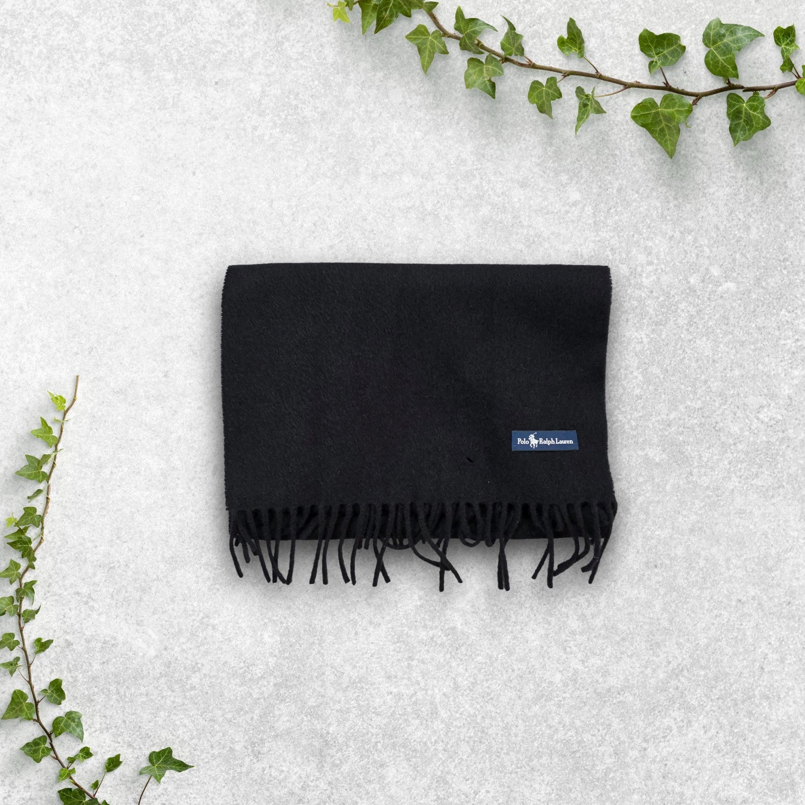Classic black scarf with subtle Ralph Lauren branding – warm and versatile for winter wear.