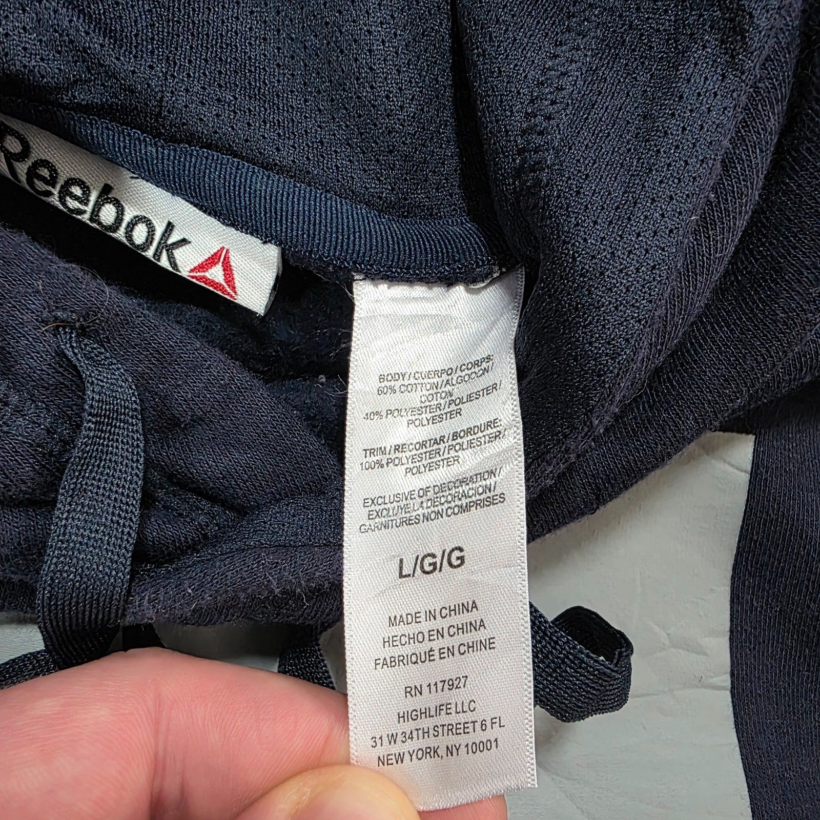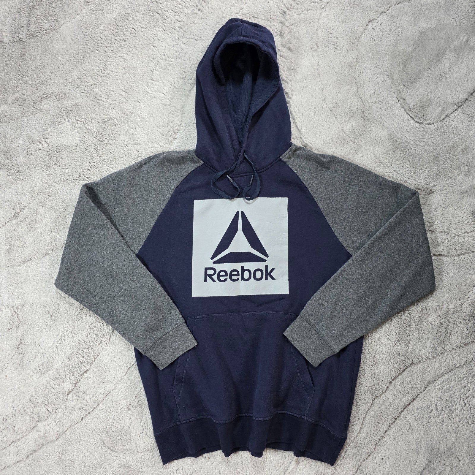 Reebok Hoodie Navy & Grey L β Large Vector Logo Pullover Sweatshirt