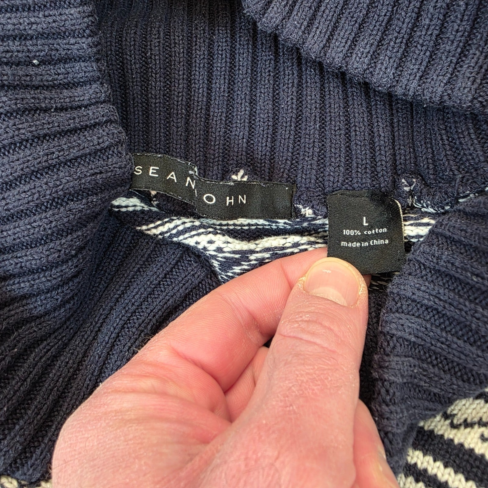Sean John Men’s Patterned Knit Sweater L Vintage Y2K Cotton Jumper
