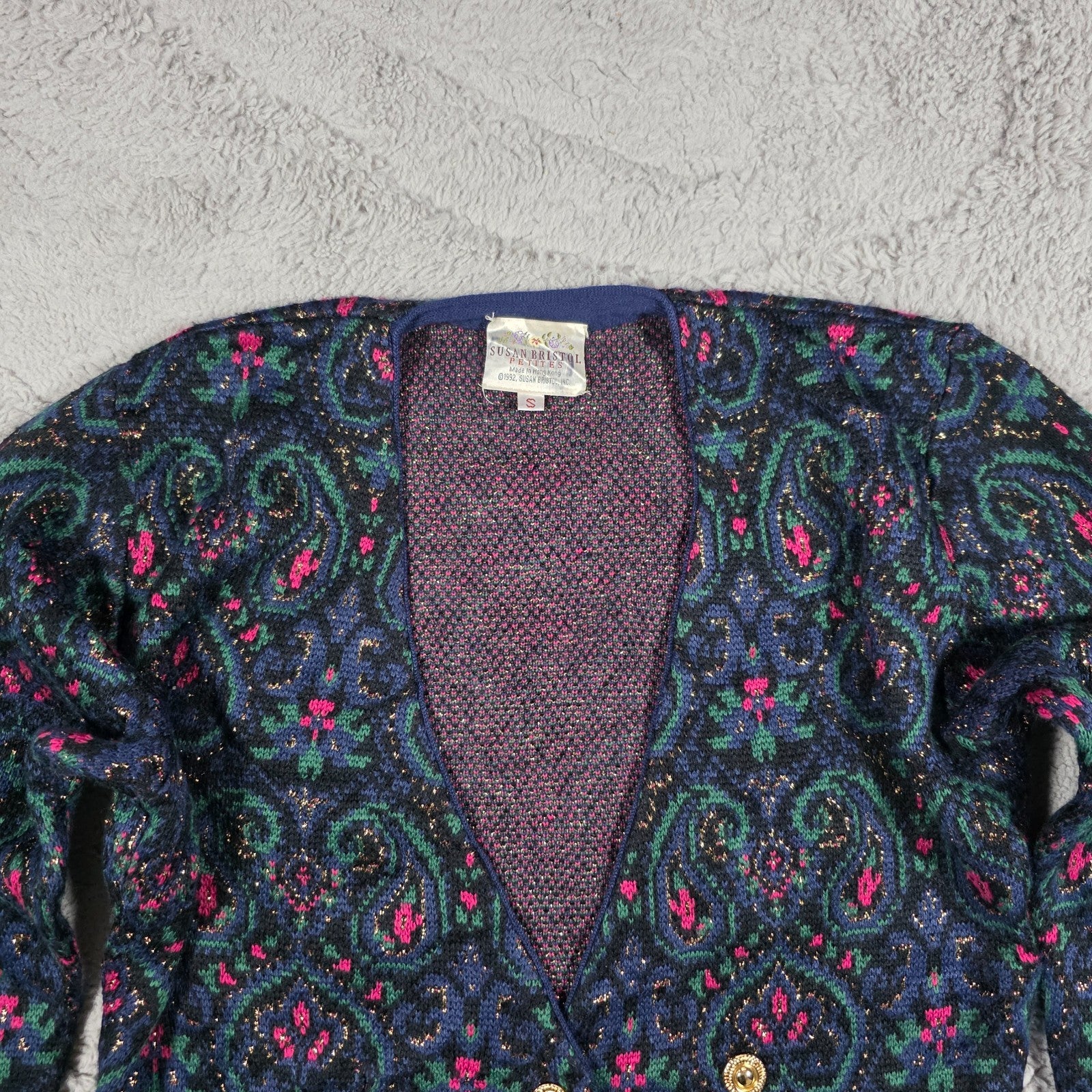 Susan Bristol Women’s S Vintage Patterned Knit Cardigan Paisley 90s