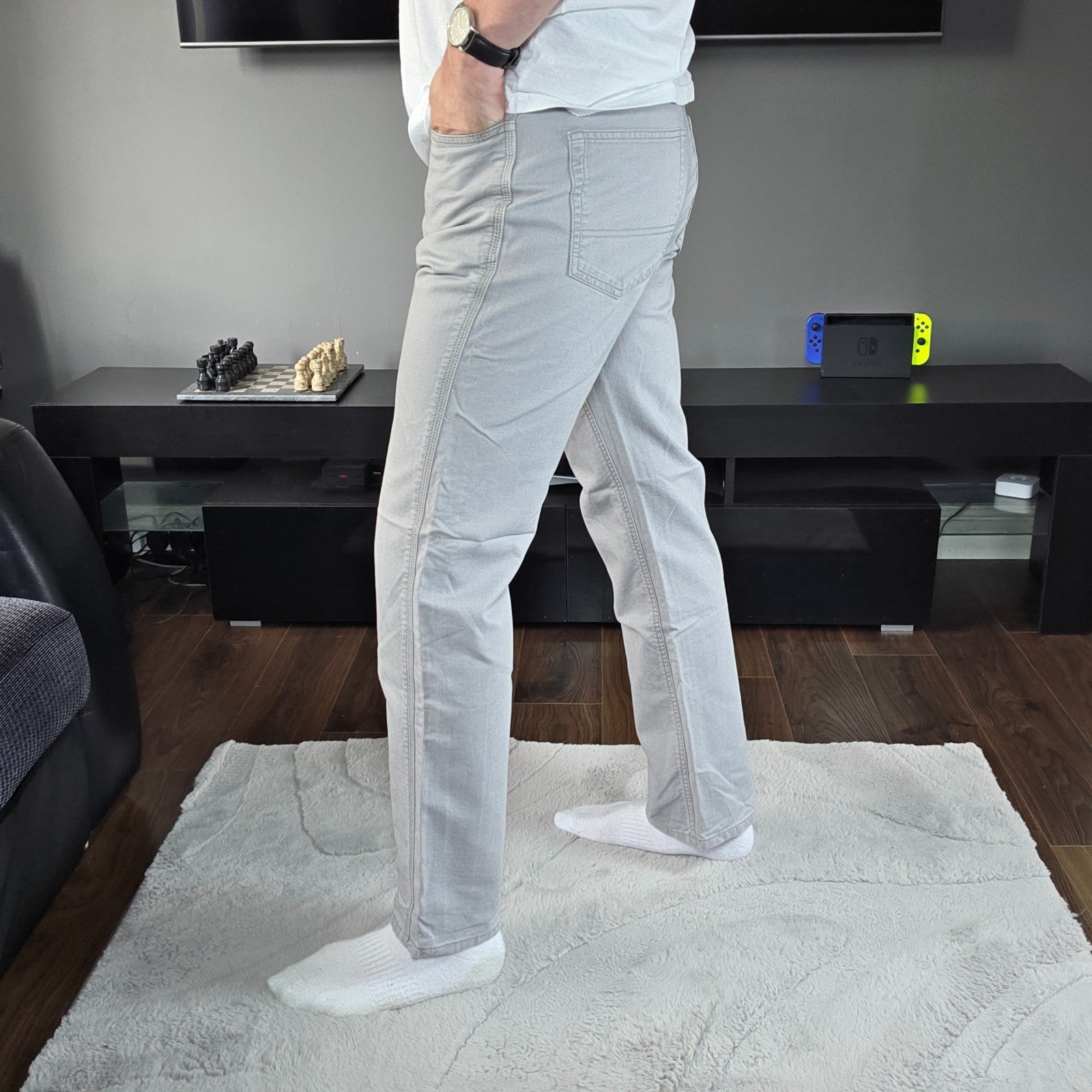 🩶 Tommy Hilfiger Custom Fit grey straight leg jeans — lightweight and comfortable, ideal for casual wear. Made in Bangladesh from 100% cotton, these have a thinner feel than typical denim, giving them a relaxed, easy-wearing fit.