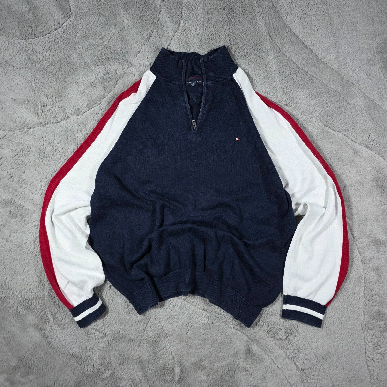🧥 Tommy Hilfiger Quarter-Zip Sweatshirt XXL Navy / White / Red
