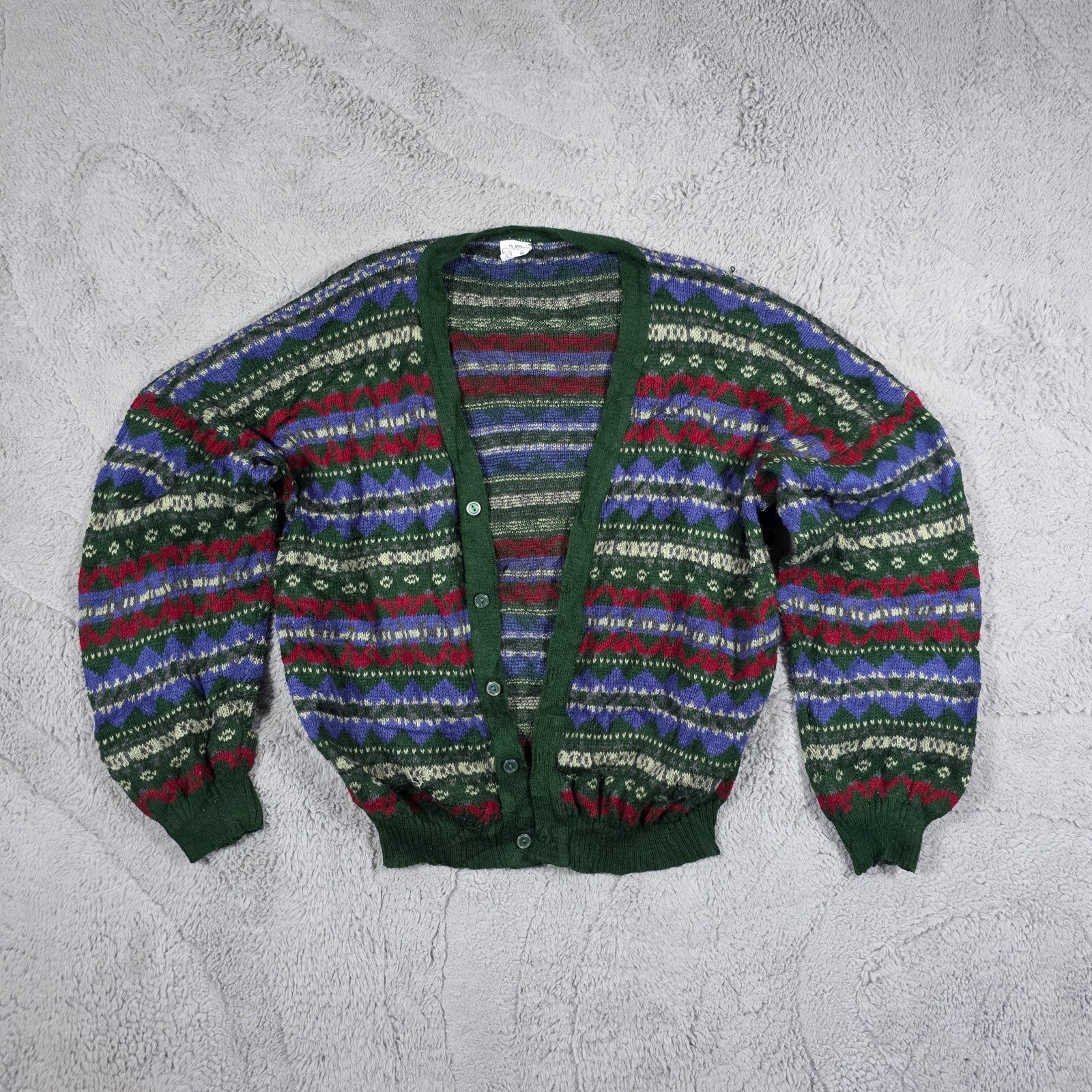 Vintage Multicolour Patterned Knit Cardigan Women’s S Green Blue Red