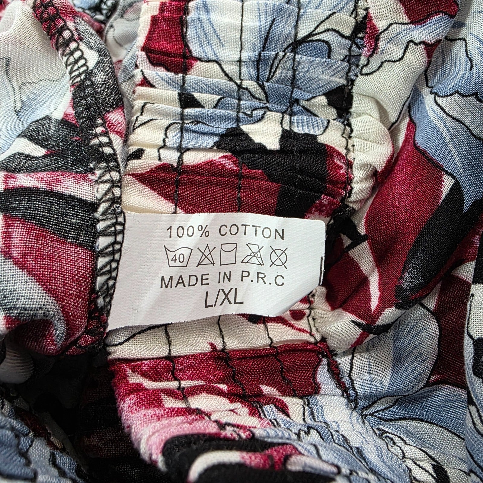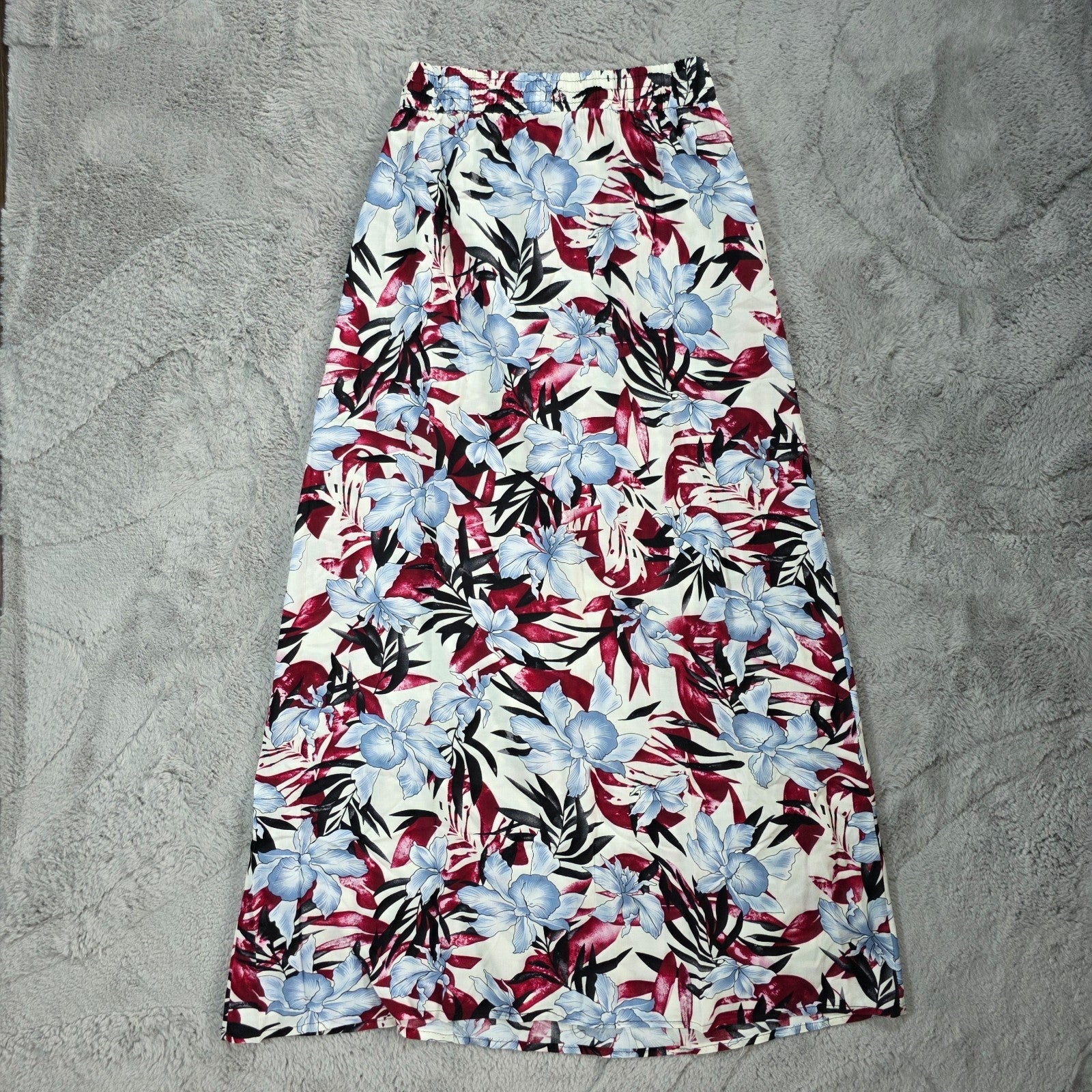 Women’s Maxi Skirt L/XL White Blue Red Floral 100% Cotton