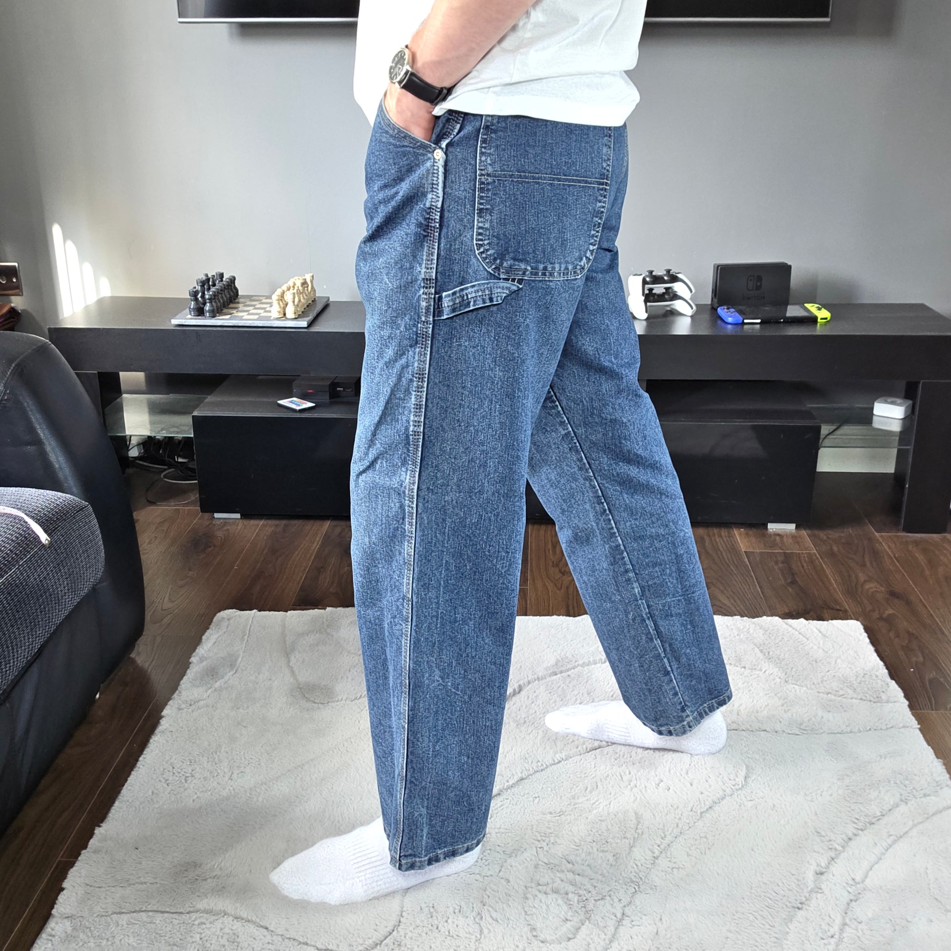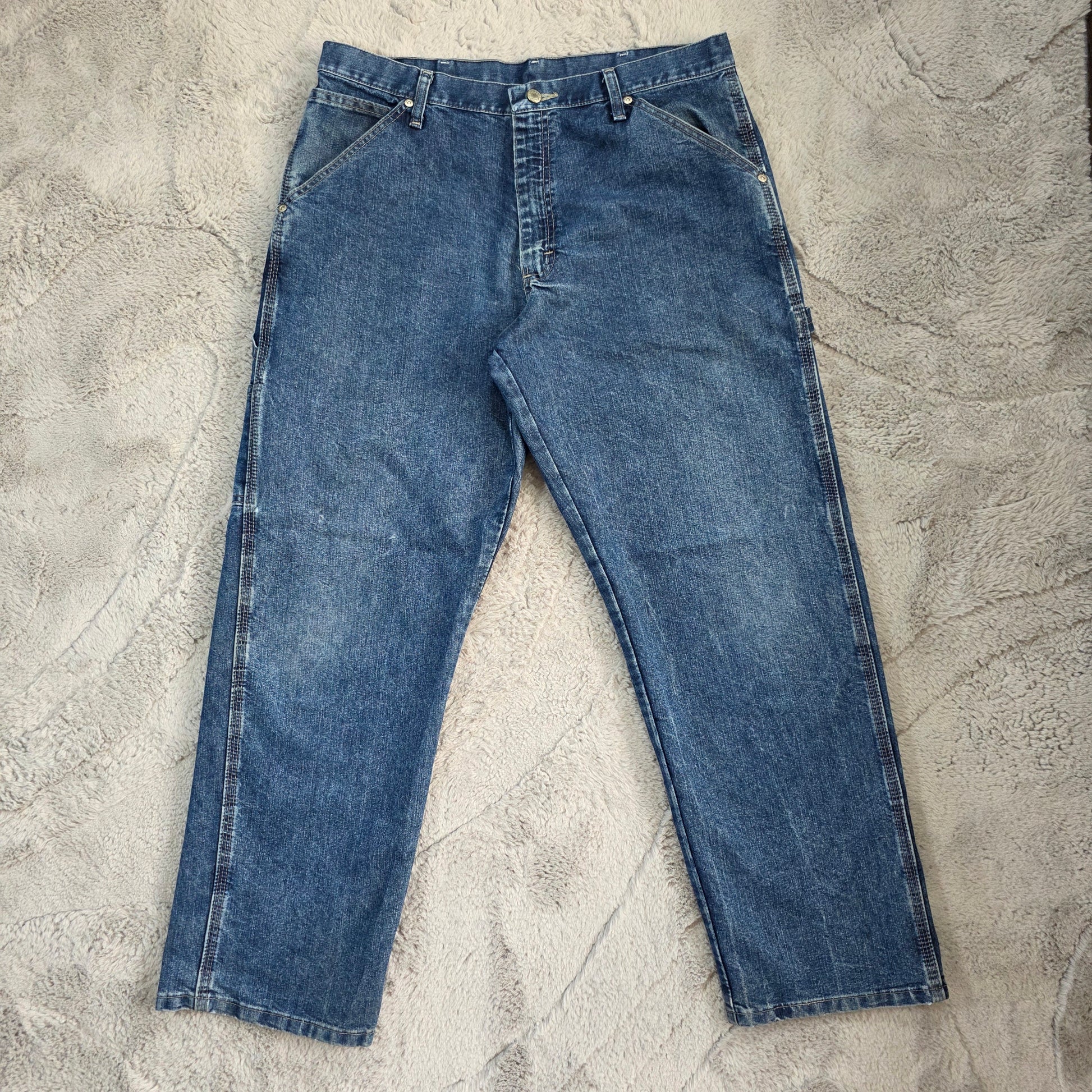 Wrangler carpenter straight leg blue denim jeans W34 L30 made in Mexico workwear
