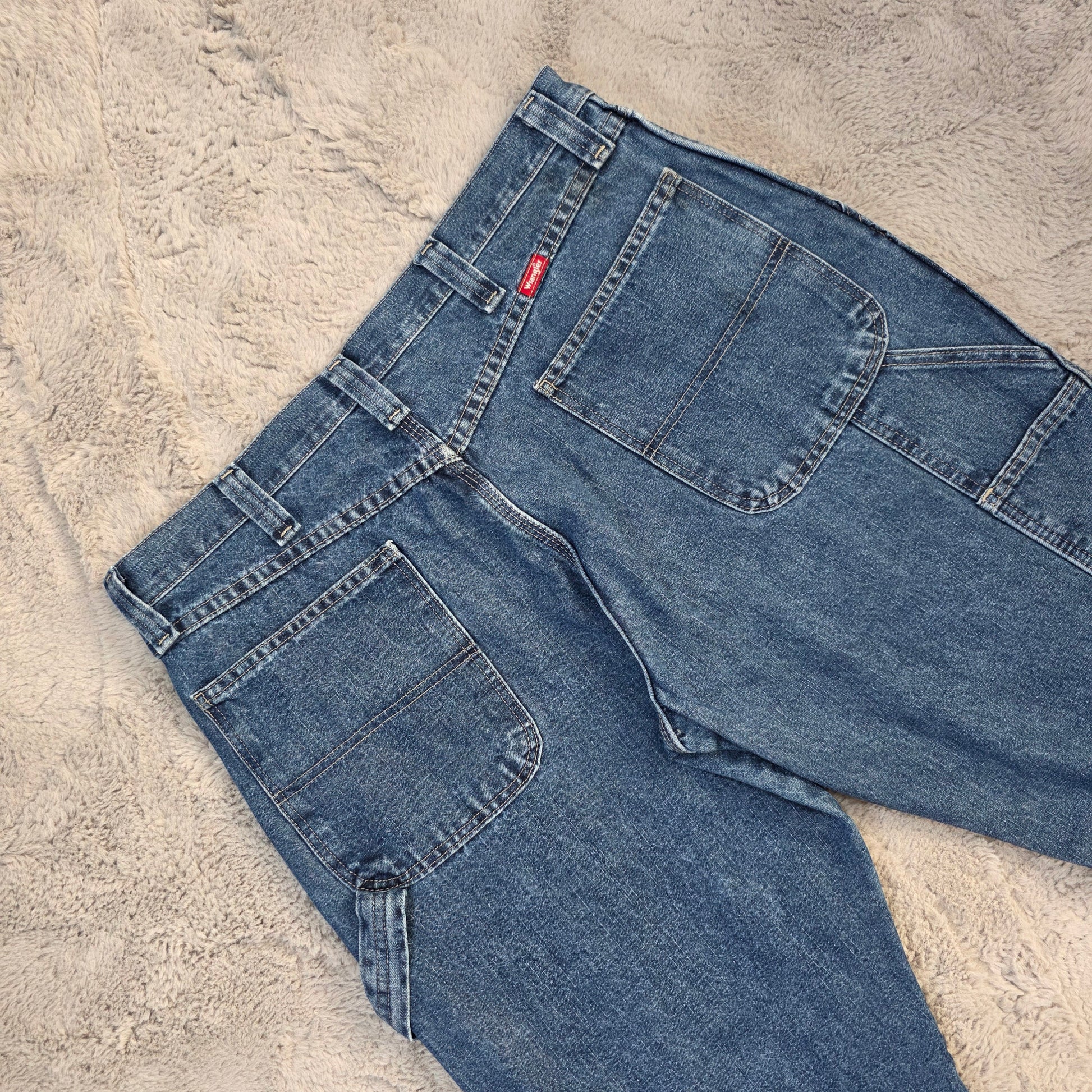 Wrangler carpenter straight leg blue denim jeans W34 L34 made in Nicaragua workwear